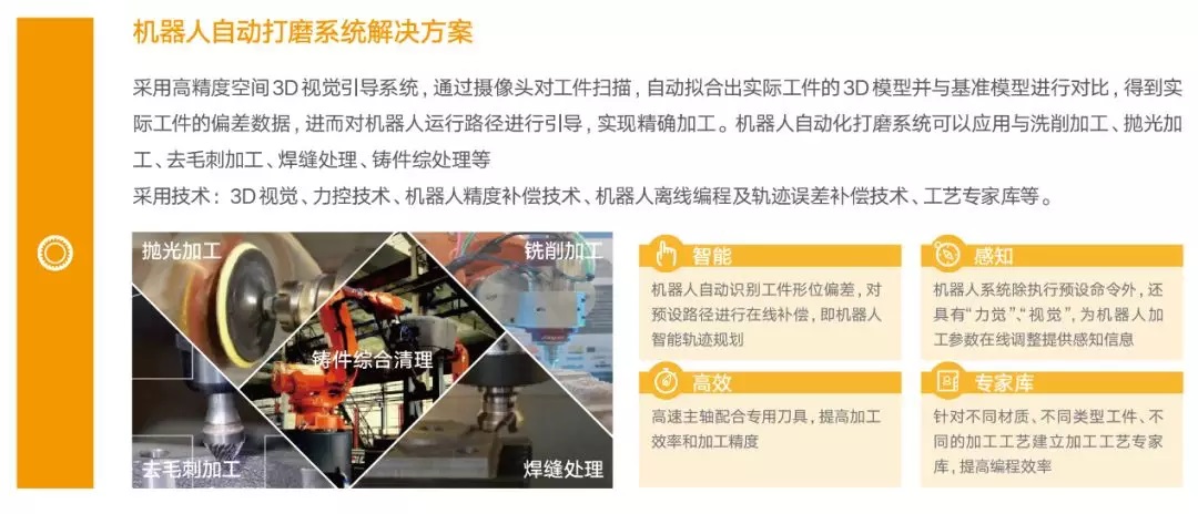 以差异化市场需求为引导、专注于特色领域,提供机器人自动打磨系统、机器人视觉系统、机器人柔性上下料工作站等智能装备系统工程解决方案。具备利用专业的工艺规划和验证手段为企业提供生产系统仿真、工厂物流仿真及三维动态可视化等服务能力。具备为汽车零部件、3C电子、工程机械、电力装备、农机装备、新材料等行业的优势企业打造智能生产线的能力。